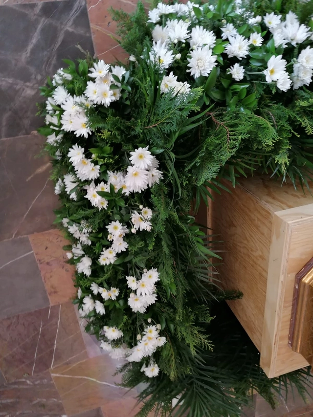 Juego de 4 jardineras de 1 metro con margaritas blanca, tulia, ruscus y cambray.
