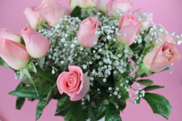 Copa estilo romana en vistas altas, 24 rosas hermosas y gypsophila, el color de la rosa puede cambiar a elección.