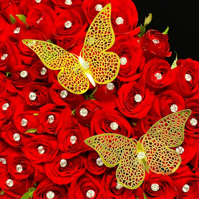 Descubre la grandeza de los detalles con nuestro Ramo Buchon de 100 rosas, adornadas con pines elegantes, una corona real y mariposas encantadoras. Una obra maestra floral que celebra momentos extraordinarios. Este exquisito arreglo floral es más que un regalo; es una obra maestra que eleva la expresión del amor y la elegancia a nuevas alturas.